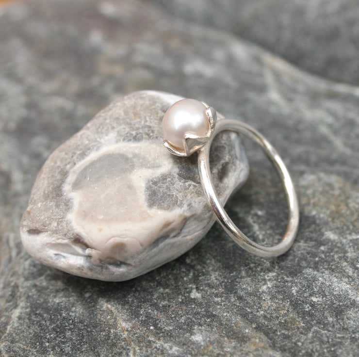 The pearl measures 7 mm and this ring is hand made from silver wire and hand cut silver sheet. If you would prefer a different colour of pearl please contact me to let me know.