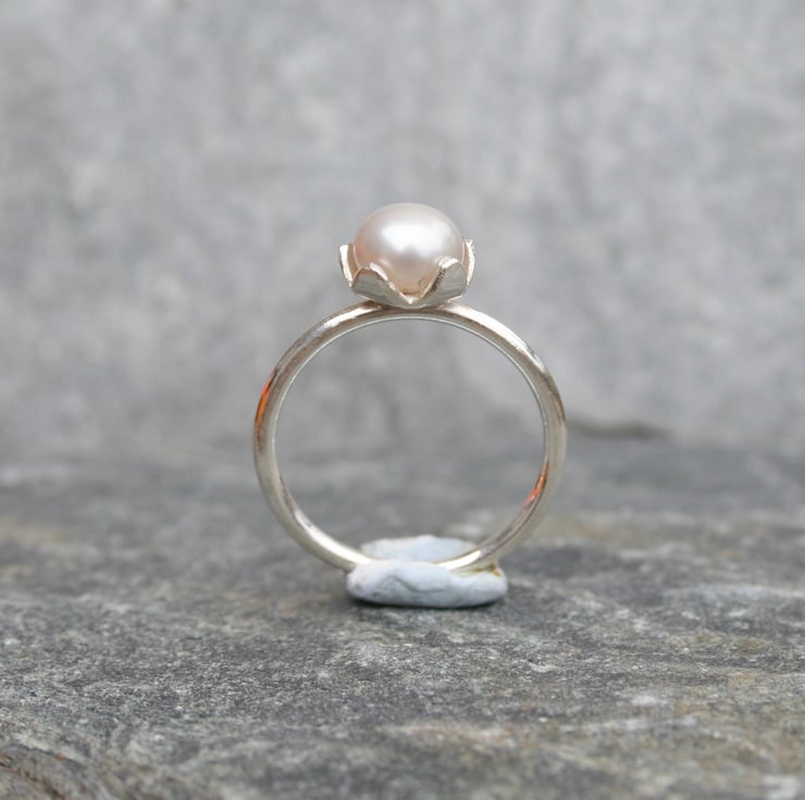 This grey pearl ring would be perfect as a pearl anniversary gift, bridesmaid gift or as a birthday gift with a June birthstone. It could even be used as an engagement ring for a pearl lover. It's a traditional piece of jewellery but the grey pearl and the flower style of setting give this solitaire ring a modern twist.