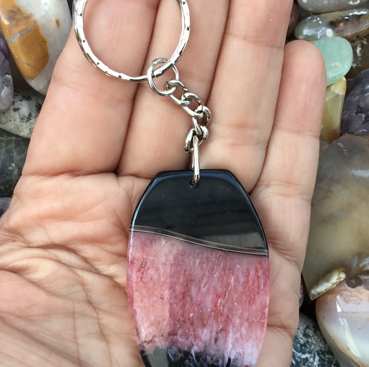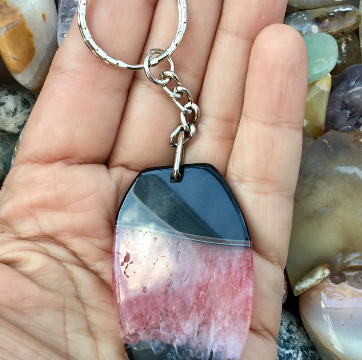 This stunning and two tone Fancy Agate pendant bead is something which should be on show so I thought it would make a fantastic keyring, or handbag charm for any lucky lady or gent. If you wanted to buy a gift as a token of love, or friendship, then this would be ideal. Equally, ideal for anyone who just loves Agate and pink tones.