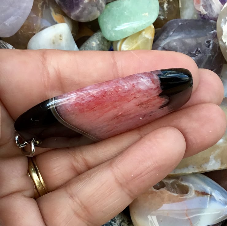 The Stunning contrast of Pink and Black in this Fancy Agate is particularly beautiful, with a vibrant Contrast between the deep midnight black and sweet pink, with a clear slim white demarcation line.