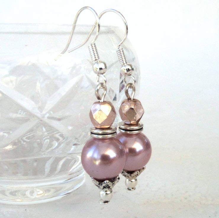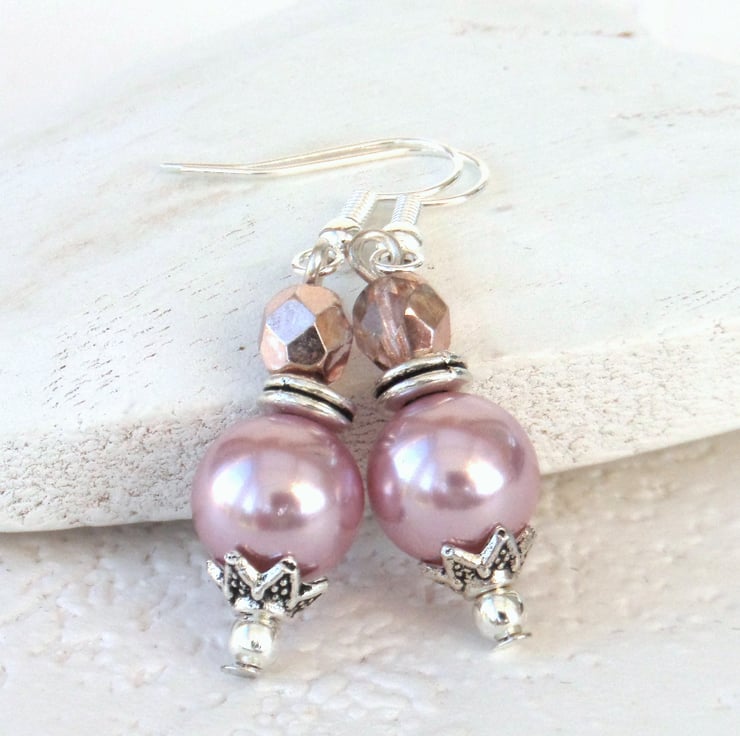 I have made them with pastel pink shell pearls and pink crystals - the crystals are described as 'half coated' as they are partly coated with a metallic finish, and partly translucent.