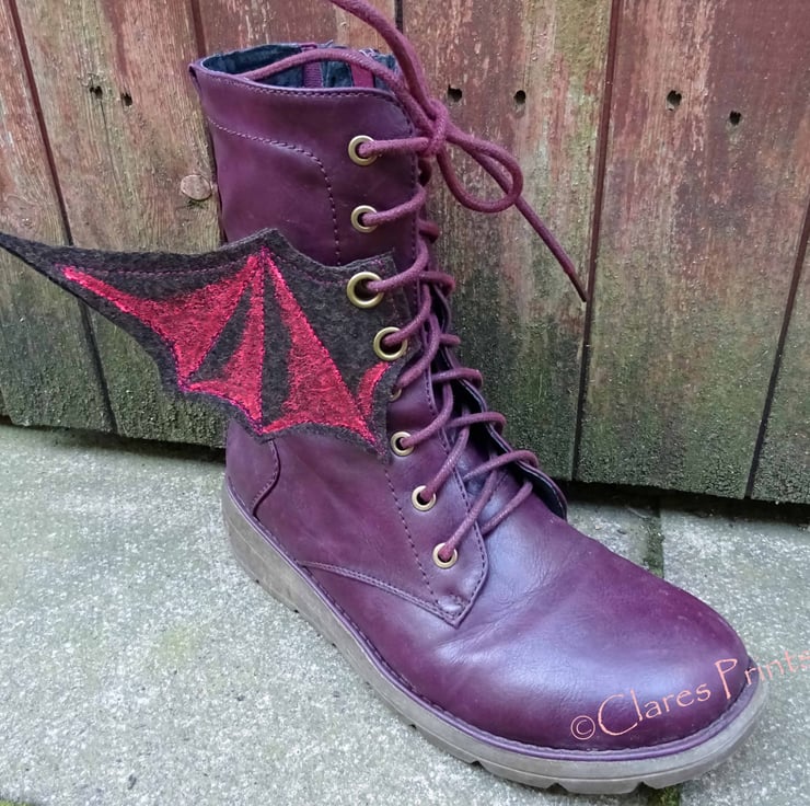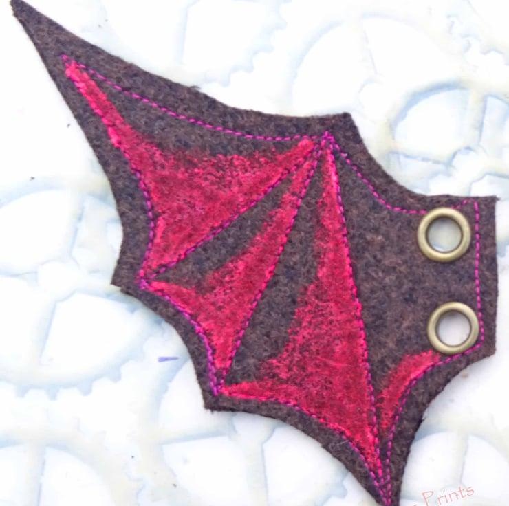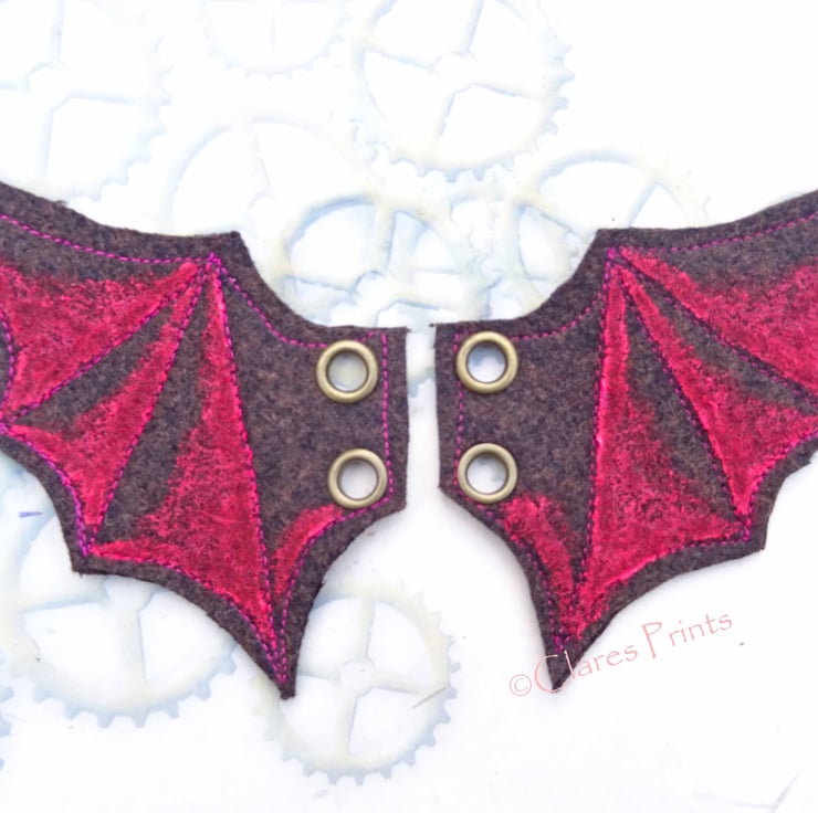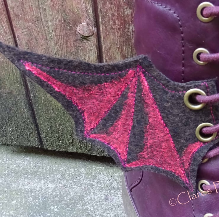 Made from 100% wool felt with two antique brass eyelets on each wing so can be threaded onto boots, corsets etc.