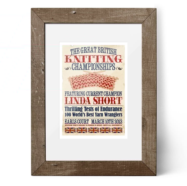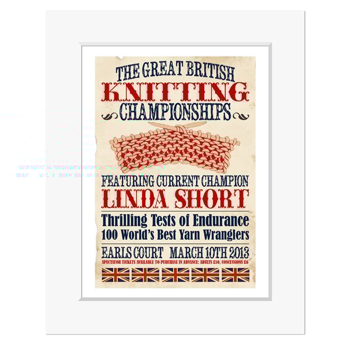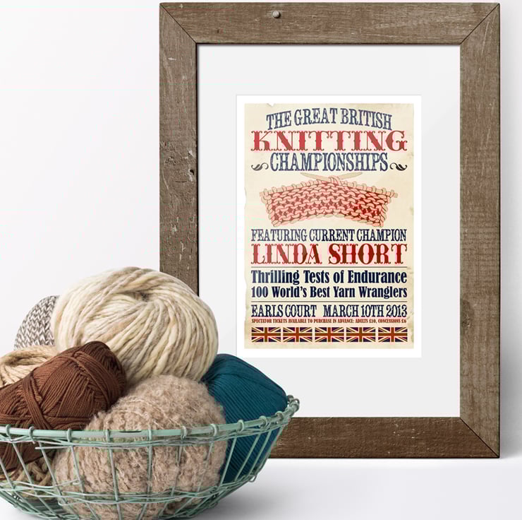 Looking for a fun personalised gift for someone who loves knitting? This is a great gift idea for that keen yarn wrangler! The print features retro style graphics for a great vintage feel. Personalised with your chosen name, date and venue to make it a truly original and unique gift.
