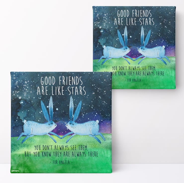 This delightful personalised print is the perfect gift for your best friend that they’ll treasure - a lasting keepsake as a 'thank you' or house move gift. Celebrate your friendship even if you can't be together as often as you'd like. Good friends are important, so let them know how much you value their support & the bond you have with each other. Personalised with your own short message, the print features the wording 'Good friends are like stars - you don't always see them, but you know they are always there', and delightful watercolour graphics.