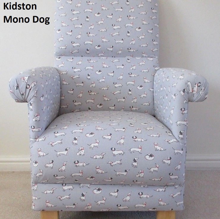 I am offering for sale, this gorgeous adult sized chair, which has been made by me, a professional upholsterer with 32 years experience, using this beautiful Cath Kidston Mono Dogs fabric.