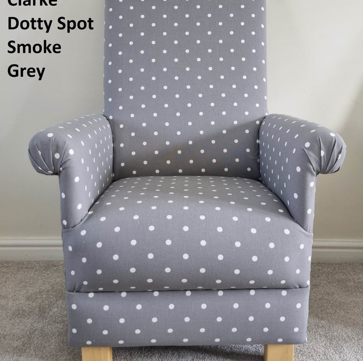 Clarke Smoke Grey Dotty Spot Fabric Adult Chair Armchair Polka Dots Nursery Spot