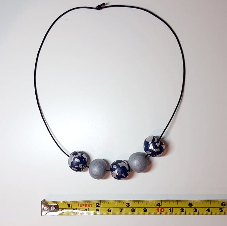 "Sugar Free" Geometric modern round beaded necklace - Navy Blue and Silver