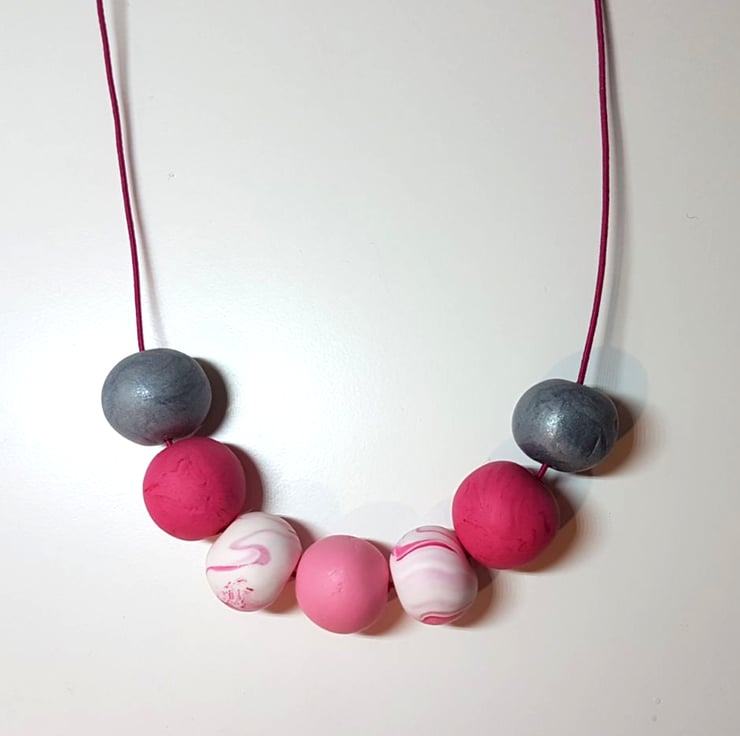 Beads are made using polymer clay, in a variety of colours, all with a matt finish and all items are handmade in Britain by myself.