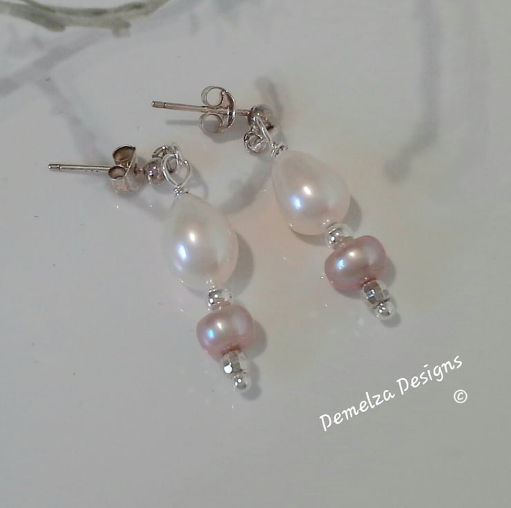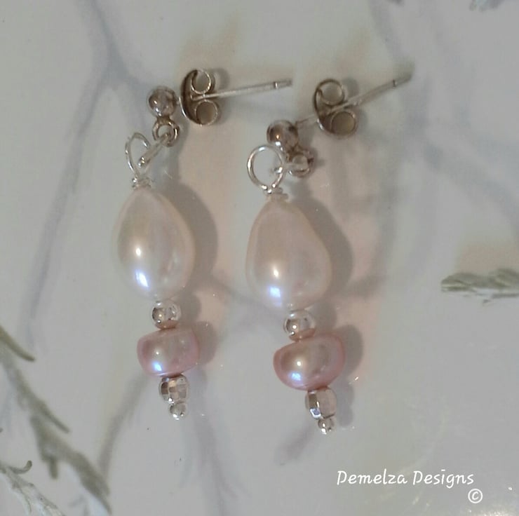 A lovely quality pair of earrings created from light beach and ivory white pear shaped culture pearls complimented with all 925 sterling silver components. These would make lovely gift for the bride to wearoon her special day from either her father, mother or future husband.