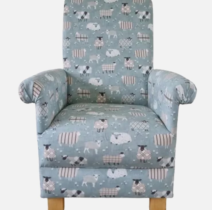 I am offering for sale, this beautiful, handcrafted child's chair, which has been made by a professional upholsterer with 32 years experience, using iLiv Baa Baa Sheep Duck Egg fabric.