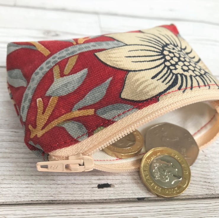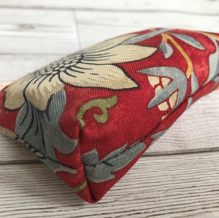 This useful little coin purse will fit into the smallest of handbags but is just large enough to hold cash and a bank card and would also hold a lipstick. With its striking William Morris pattern, it would make a lovely small gift.