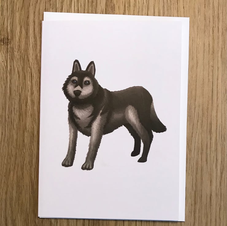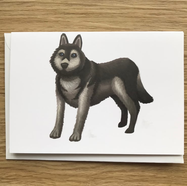 Husky blank greeting card with white envelope by DuffleCat Prints (Damian Case)