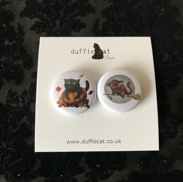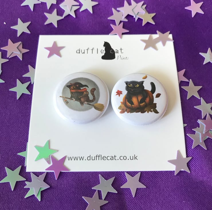 2 Halloween cat mini magnets. Cat Witch and Pumpkin Cat.