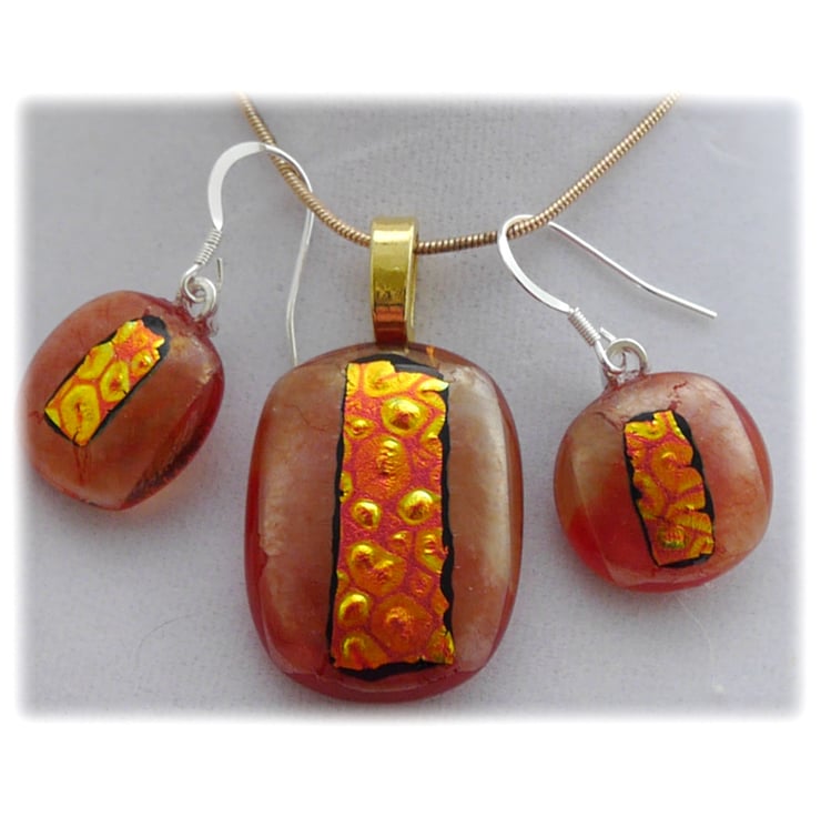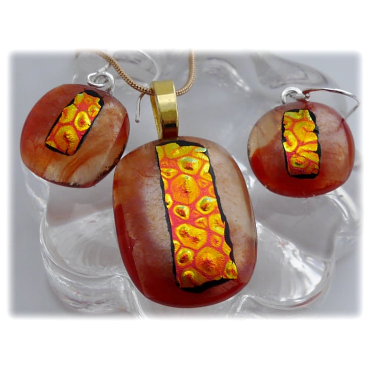 The dichroic glass cabochons for the pendant, matching earrings were handmade, by me with love.