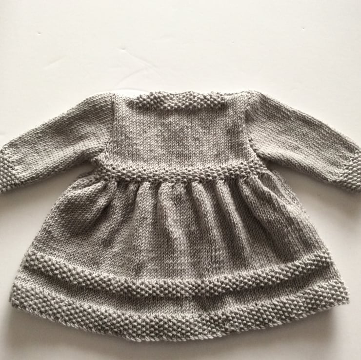 Full length with a square neckline and a moss stitch border and matching cuffs