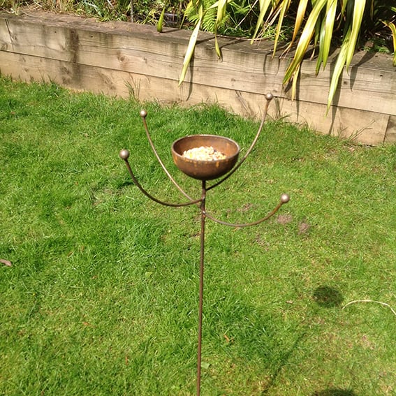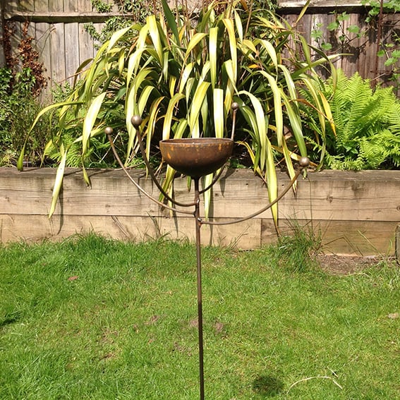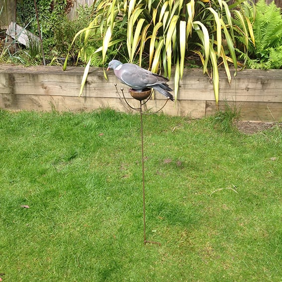 110cm tall, rustic upright bird with 10cm feed bowl with perches. Handmadefrom mild steel, the feeder bowl will age beautifully as it feeds the birds in your garden. ©Urban Native Design 2018