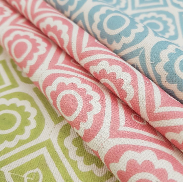 All the fabrics here are designed by me and printed in the UK. I make all the products in my Cotswold studio. I aim at posting items off within three days, with the exception of fabric which you should allow 14 days for delivery. If you are interested in purchasing fabrics, please contact me for a free sample.