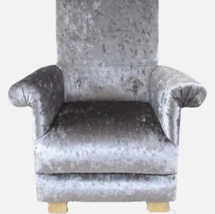 Silver Grey Crushed Velvet Child's Chair Kid's Armchair Toddler Baby High Back