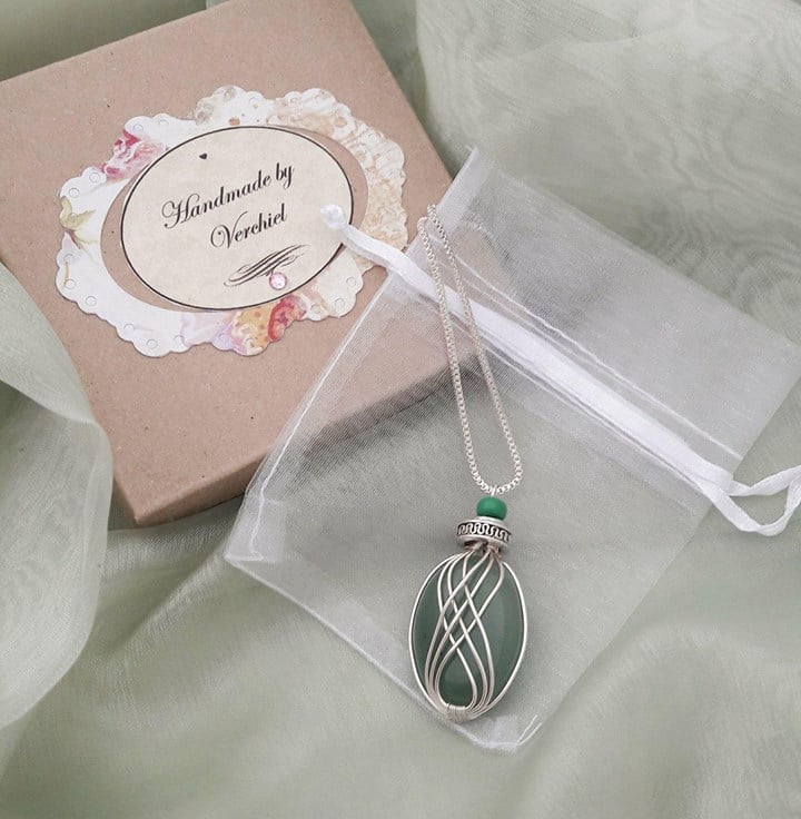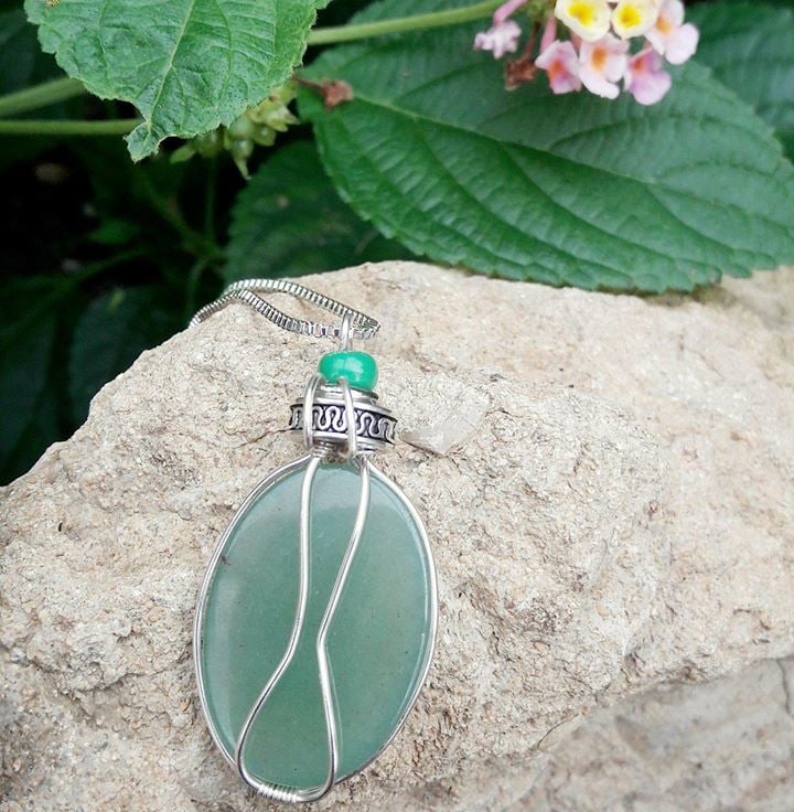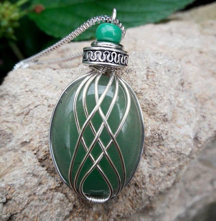 Handmade Wirework Celtic Style Jewellery with Aventurine natural stone.