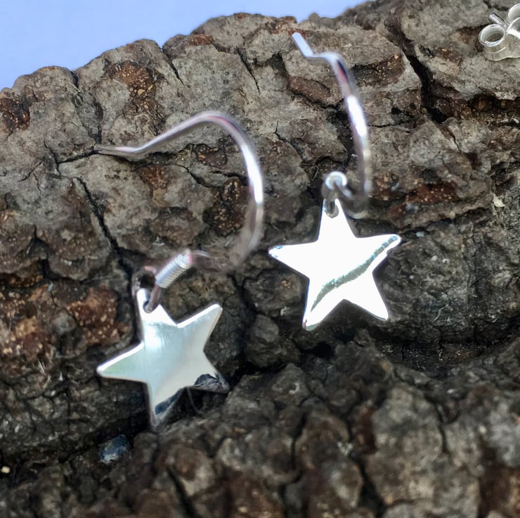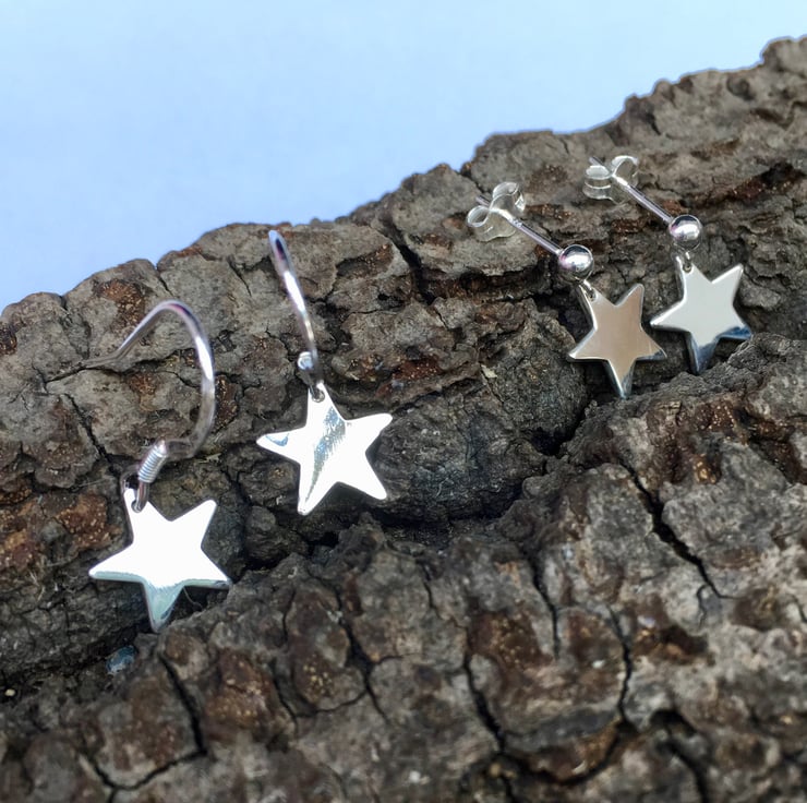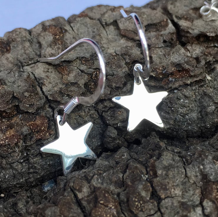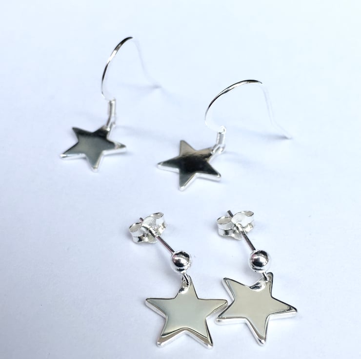 Light weight silver drop earrings with a 925 solid silver star motif.