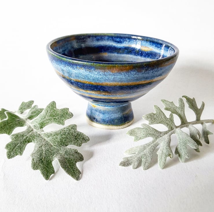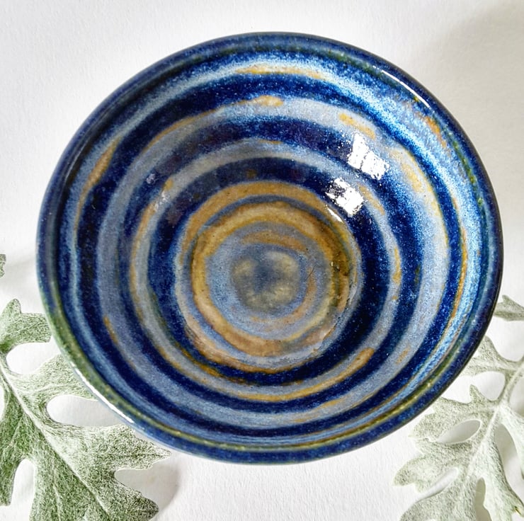 Hand thrown on my potters wheel and glazed in blue and brown glazes