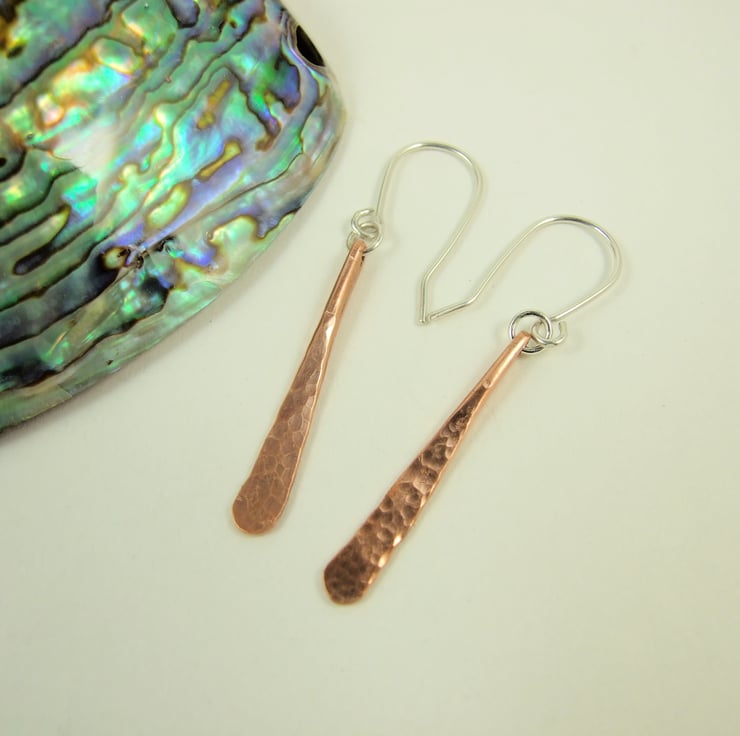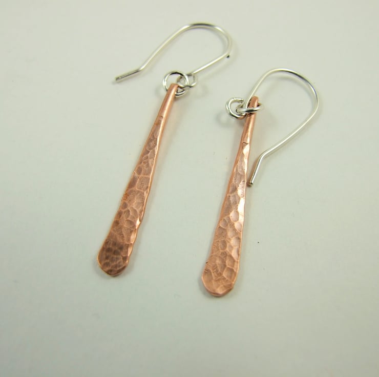 Hand Forged Hammered Copper Bar Dropper Earrings with Sterling Silver