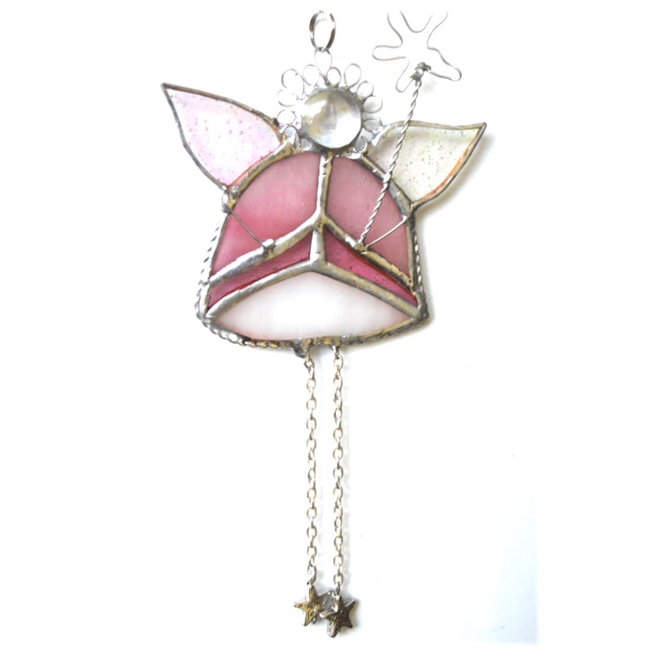 This is a stained glass suncatcher made using the Tiffany copper foil technique.