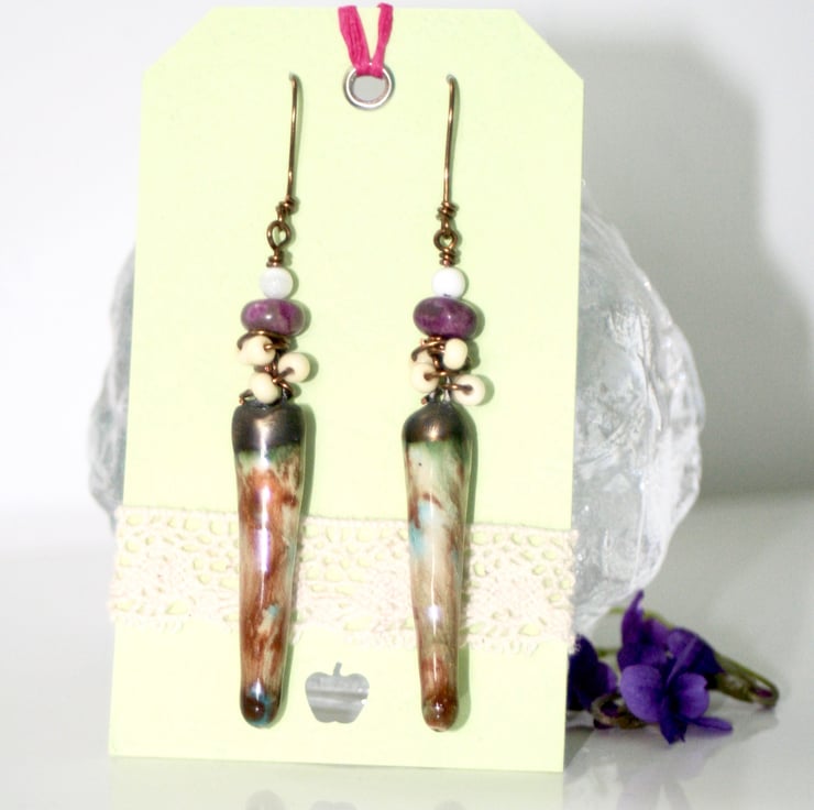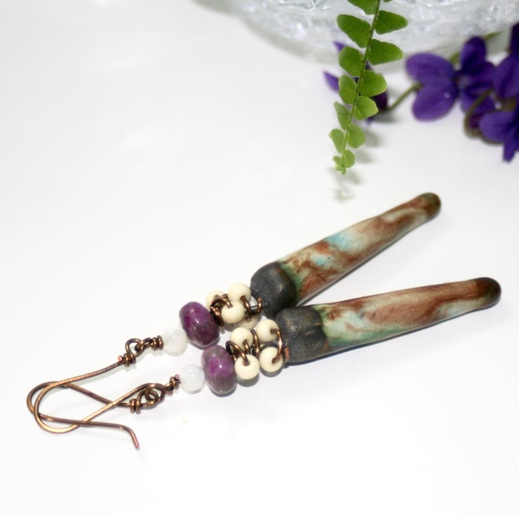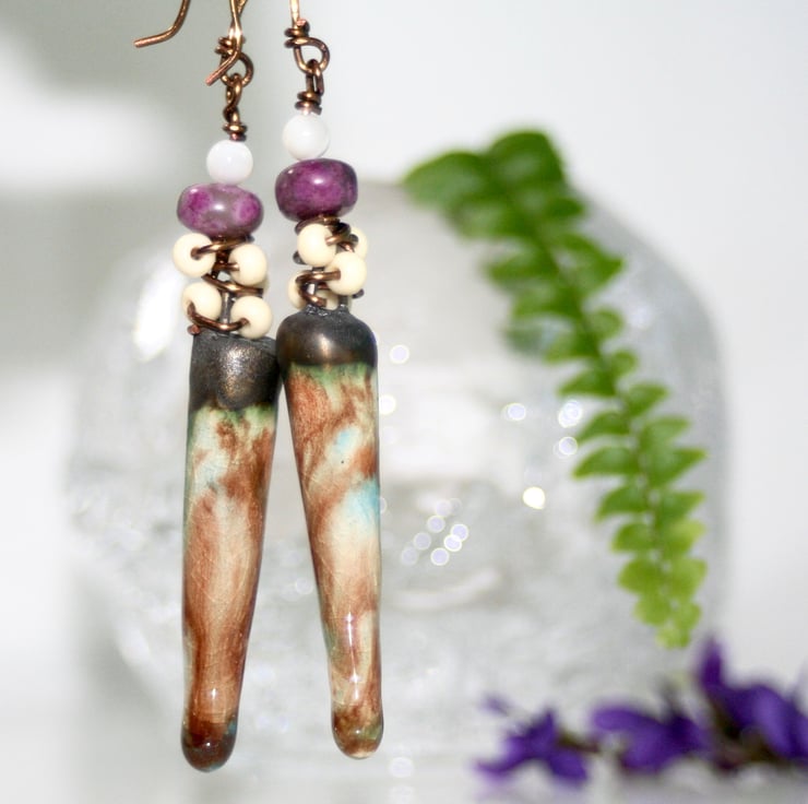 These earrings feature beautiful earthy-toned ceramic spikes from Scorched Earth.