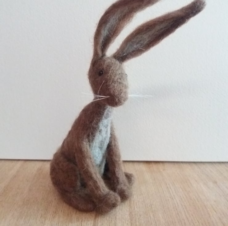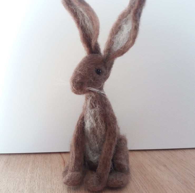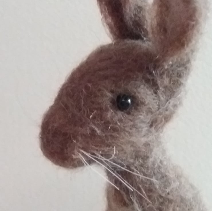 Meet Humphrey. Humphrey is a Brown Hare, with beautiful large ears! He has been needle-felted using brown Manx Loaghtan undyed wool, with a touch of natural Shetland. He has glass bead eyes and horsehair whiskers.