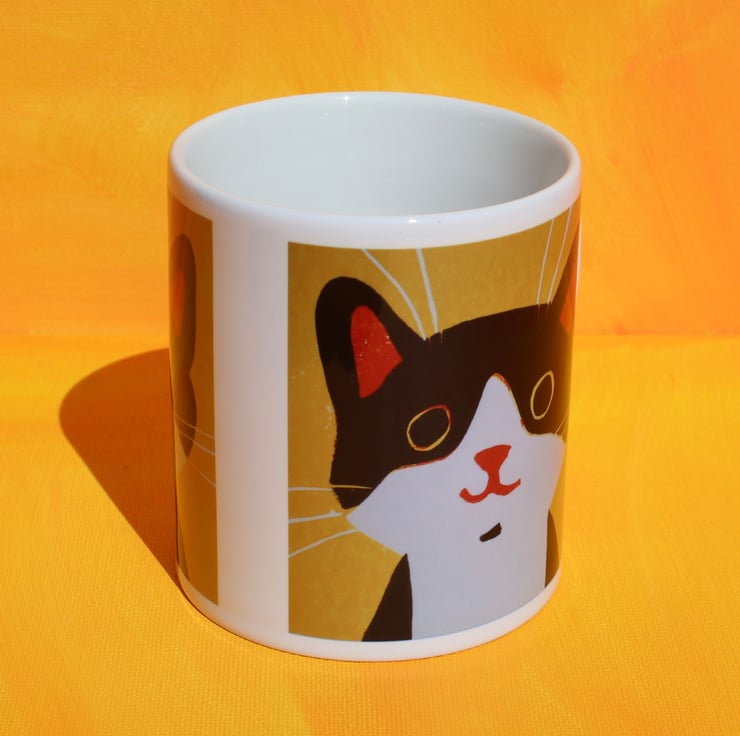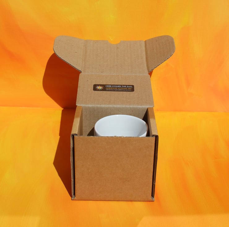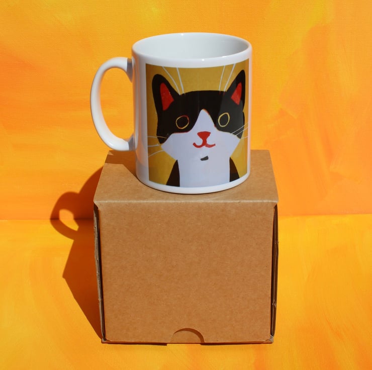 This 10oz Durham style mug has been printed with my Happy Cat Lino cut design on both sides. Supplied in a gift box it’s guaranteed to hold drinks purrfectly...time you wrapped your paws round one!
