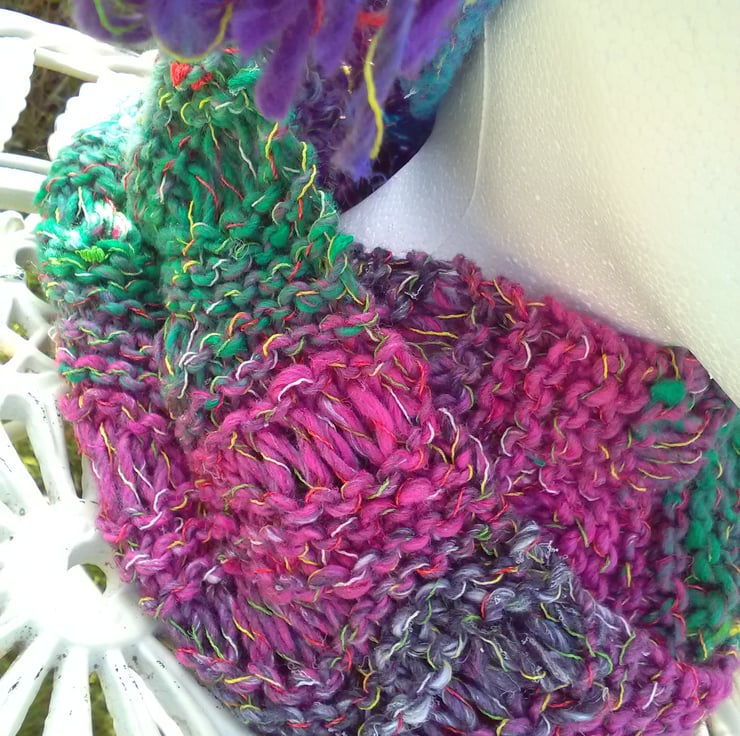 Noro MOBIUS NECK WARMER cotton, wool & silk in purple, turq, pink, white & green
