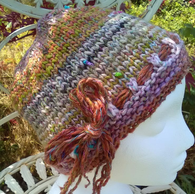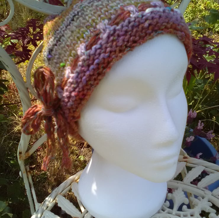 This design incorporates and eyelet band through which I have threaded strands of the yarn and tied in a bow. This make it great for size flexibility and will fit chidren to medium adult head. Some will fit medium to large also as they are made a bit longer. I have indicated approximate sizing on each colourwave made up. Feel free to make an order with you required size if you don't see the size available here.