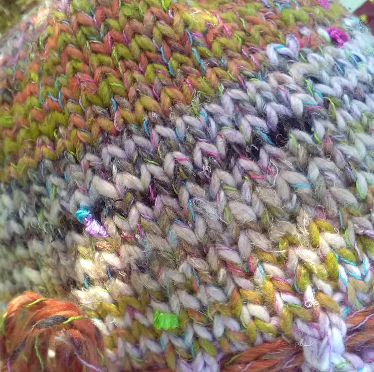 The yarn has a lovely soft slub and is made from 57% Cotton. 17% Wool, 17% Silk,