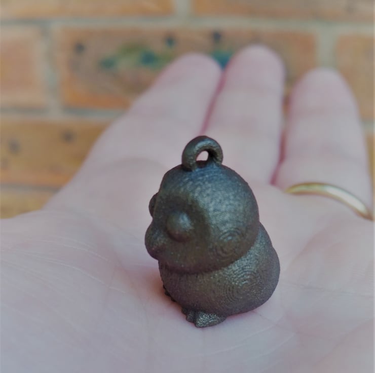 Ideal as a pendant hanging from a necklace or used as a charm for a bracelet. This Owl is designed by myself and is then created using a 3D printer. The surface of the pendant is textured and rough and may show up print lines from the manufacturing process.