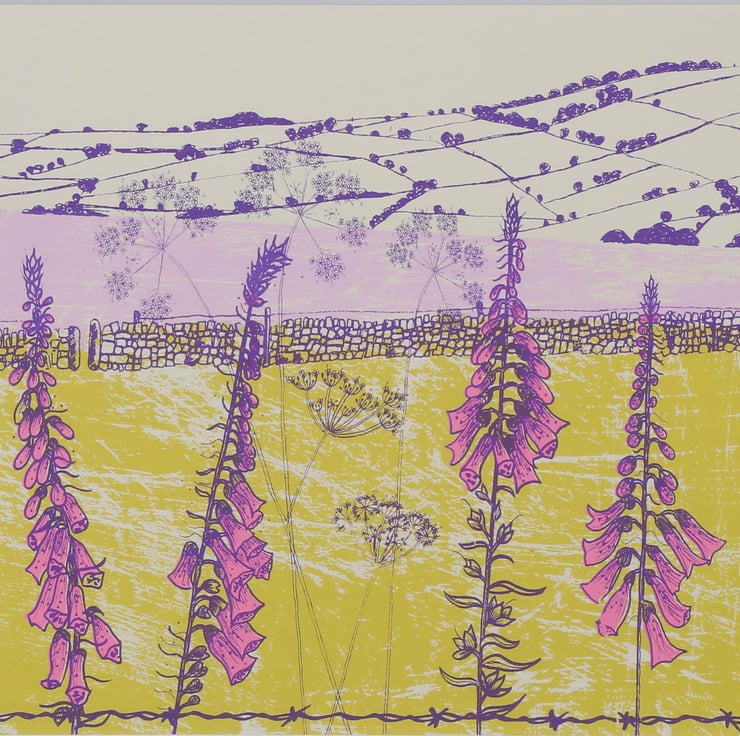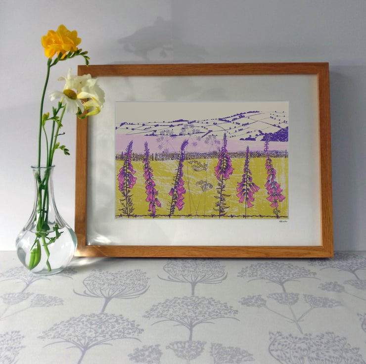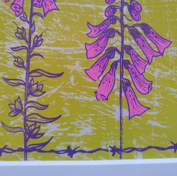 A hand-pulled screen-print called ‘Flowering Foxgloves’ in a pink colour way. Stock clearance - there is nothing wrong with these prints!