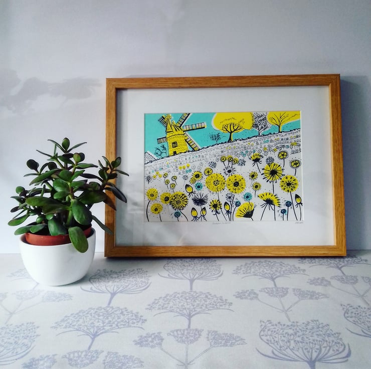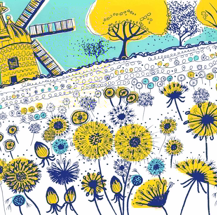 A hand-pulled screen-print called ‘Dandelion Windmill’.