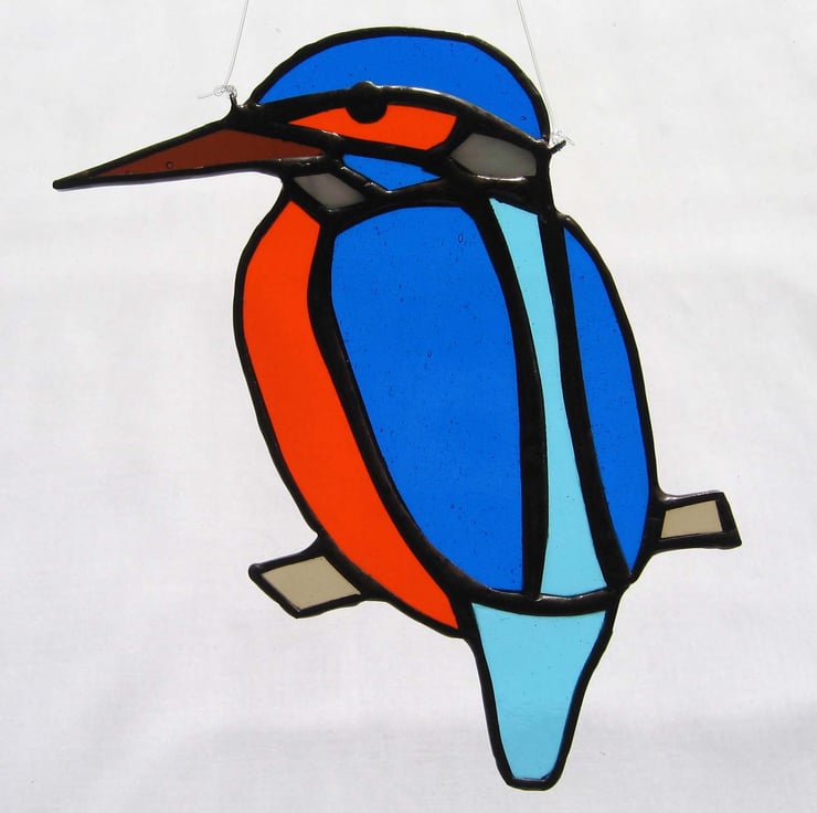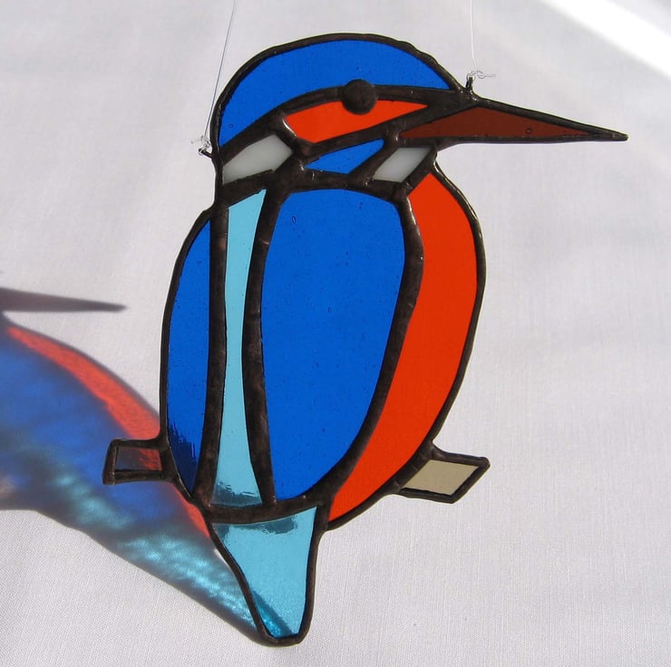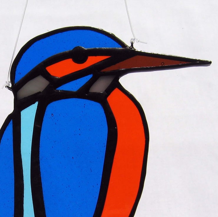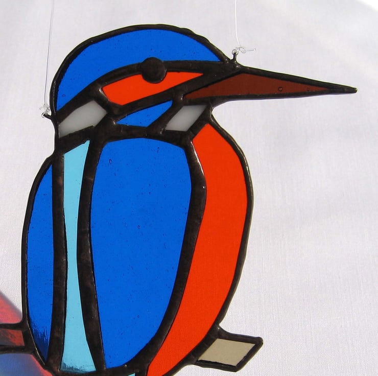 Held by a length of strong, clear nylon line, the Kingfisher is ready to hang in a window or in front of any light surface.