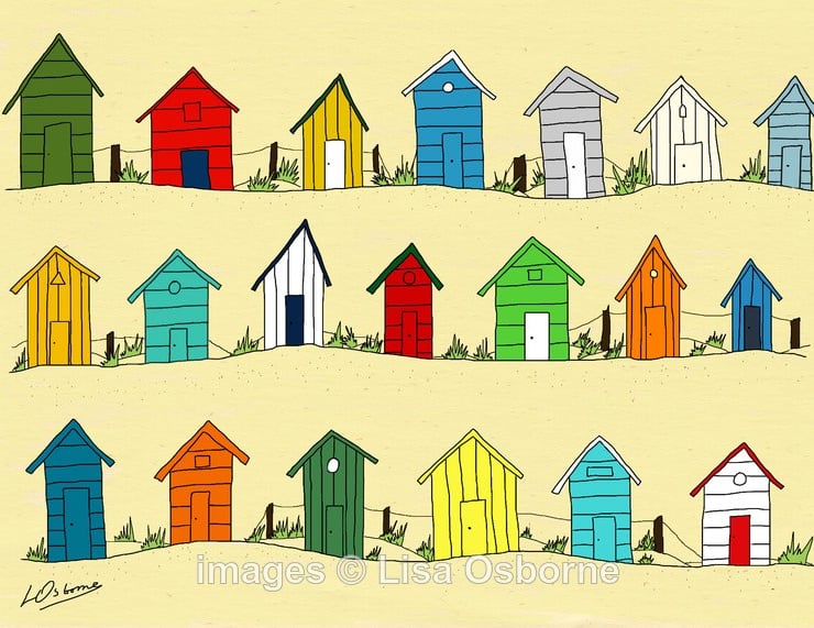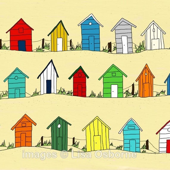 Beach Huts - colourful print of beach huts by the coast.