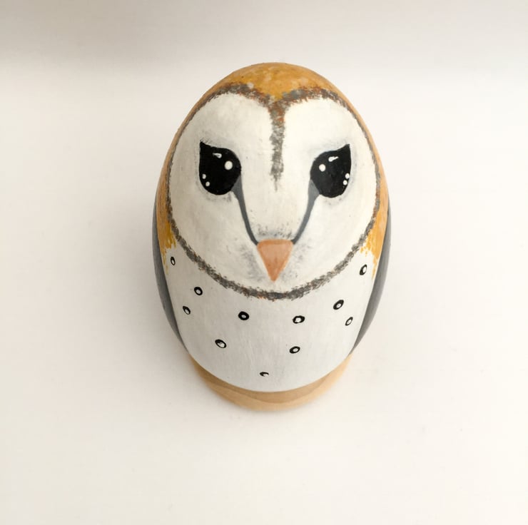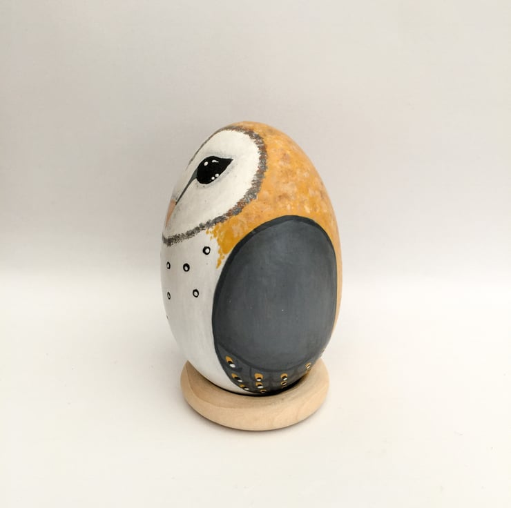 Here is barn owl which I have hand painted on to a solid beech wood egg.