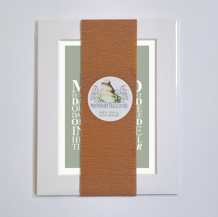 Your artwork is created to order and printed on quality gloss finish paper stock. It is presented with a backing board and white bevel cut mount, and sealed in a clear presentation sleeve. Posted in a strong hardbacked envelope. The print & mount is 10inches x 8inches (approx 25.4cm x 20.3cm) and will fit any standard 10x8 picture frame.