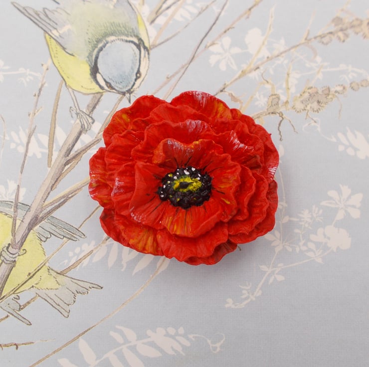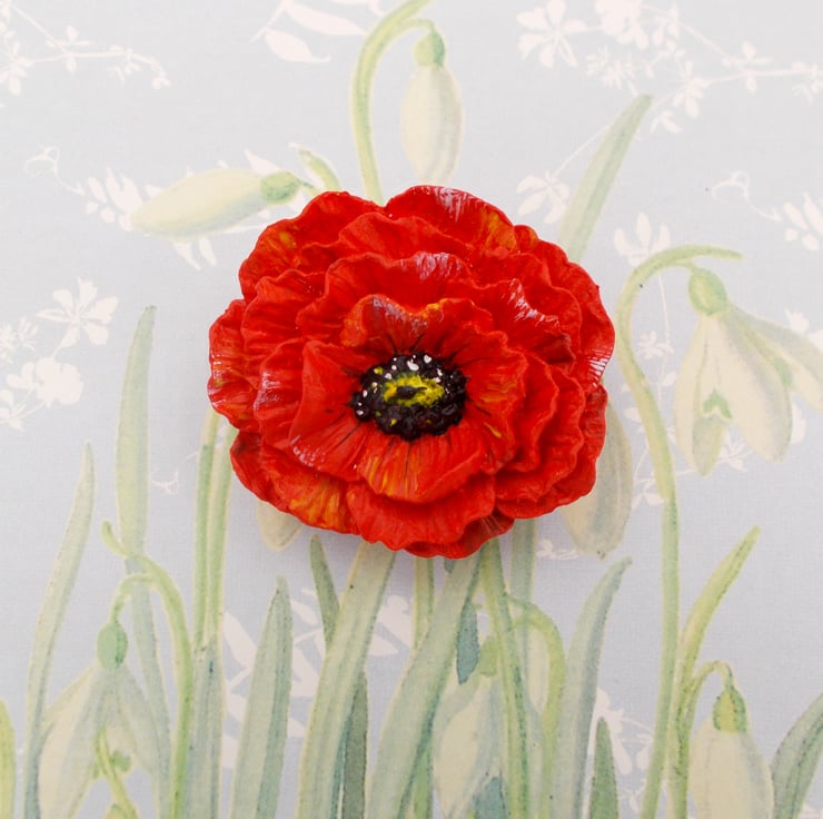 You are looking at a variation of one, of my more unusual Designs----The Stunning Large RED POPPY BROOCH... Lapel Pin