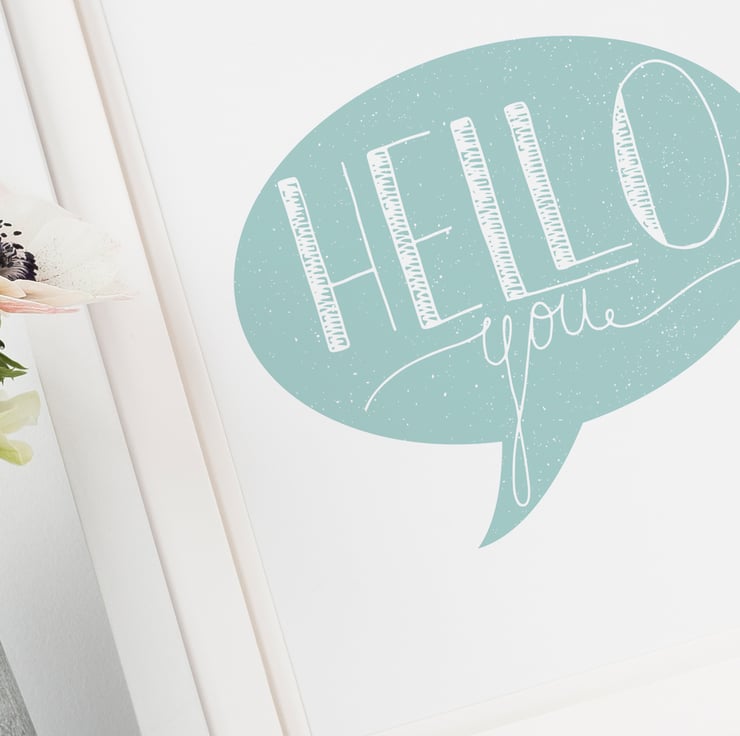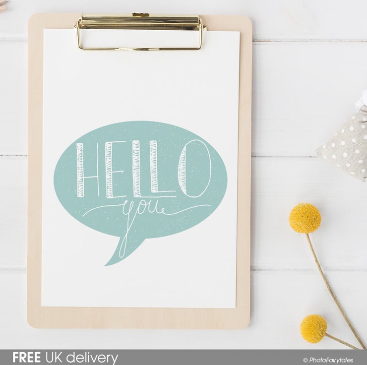 The Hello You print is in gorgeous soft turquoise and white, and has a lovely fresh and contemporary feel. Perfect for a wedding anniversary, Valentine’s Day, new baby’s nursery, or birthday gift this stylish typographic print lends itself to lots of gift occasions – or just a little treat for your own interior!