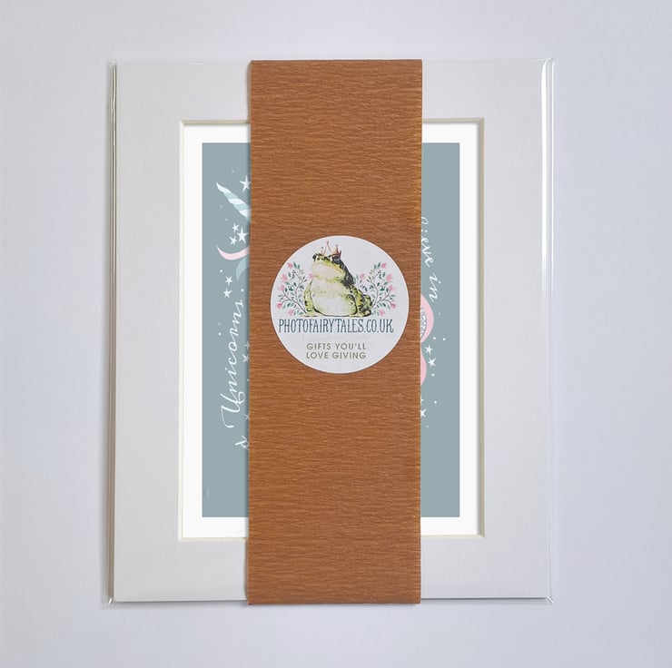 Your artwork is created to order and printed on quality gloss finish paper stock. It is presented with a backing board and white bevel cut mount, and sealed in a clear presentation sleeve. Posted in a strong hardbacked envelope. The print & mount is 10inches x 8inches (approx 25.4cm x 20.3cm) and will fit any standard 10x8 picture frame.