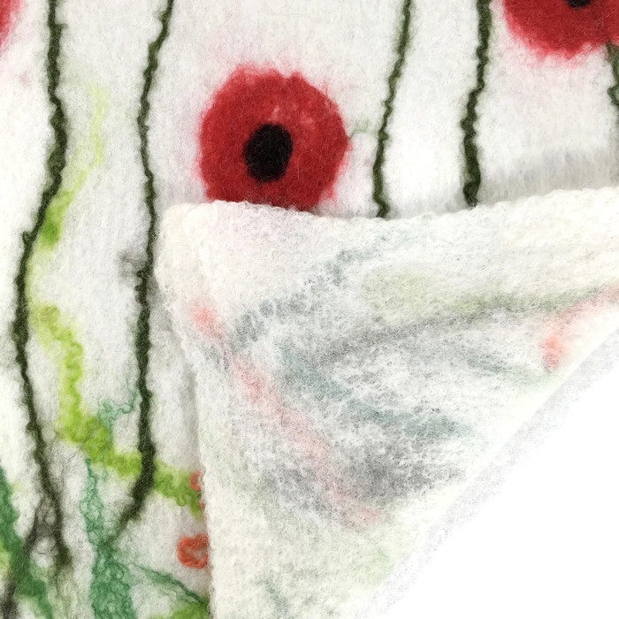 Note: the poppy design has been added to one side of the scarf only with the reverse felted but left plain.