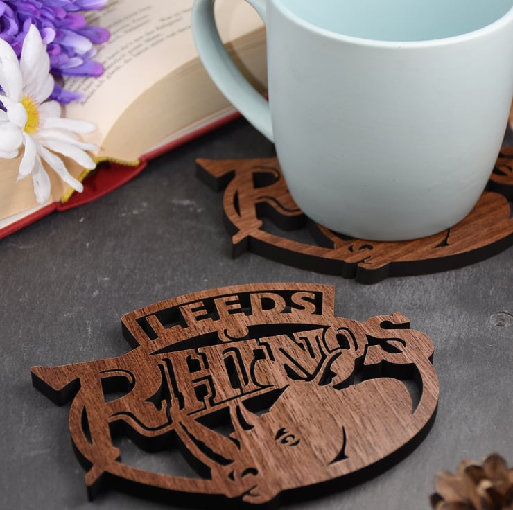 The Leeds Rhinos coasters are constructed from a high quality walnut veneered mdf.