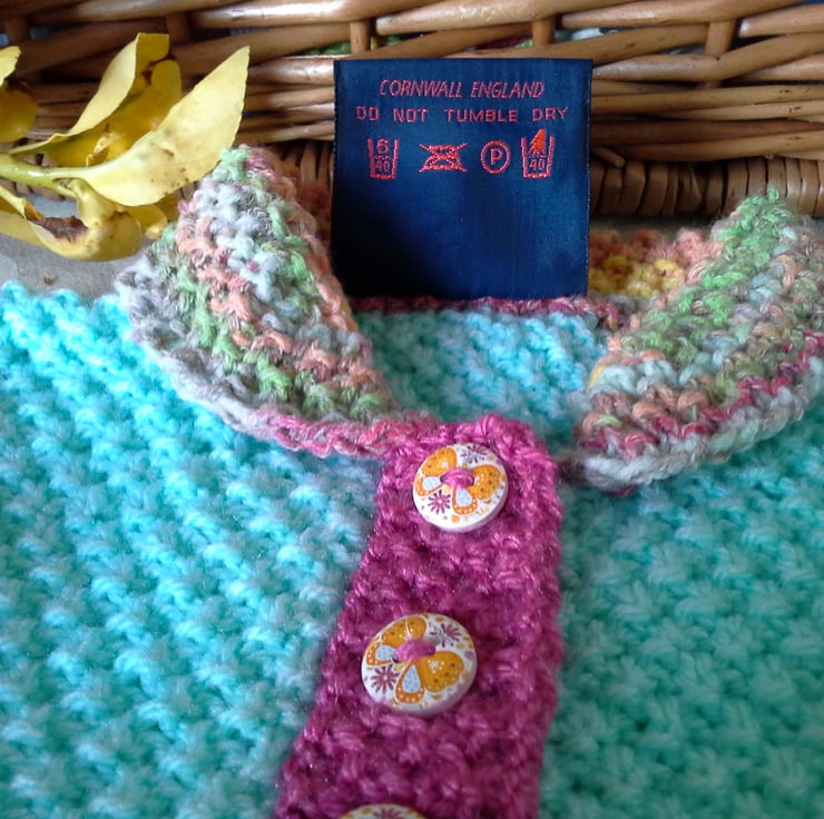 Baby knitwear is designed and hand crafted by Demelza Designs in Cornwall meeting UK baby safety standards, Only branded premuim acylic, acrylic/natural fibre blends or pure natural fibre yarns are used in baby knitwear which conforms to BS984/76 standards.