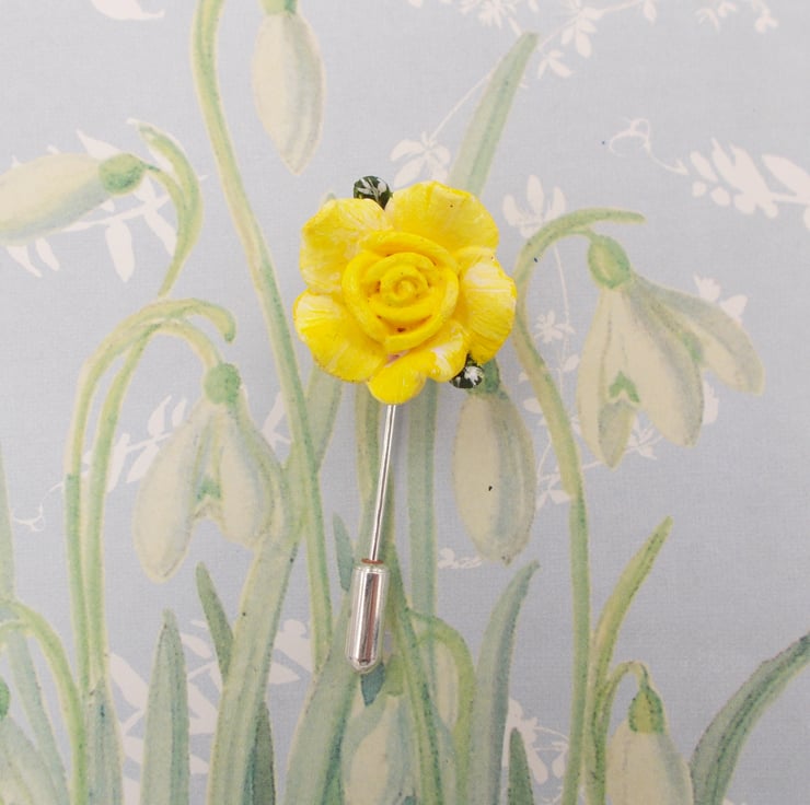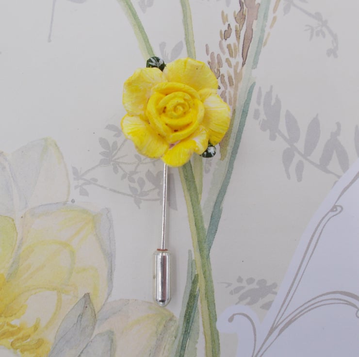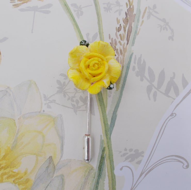 The Small YELLOW ROSE STICK PIN..... Lapel Flower Pin.