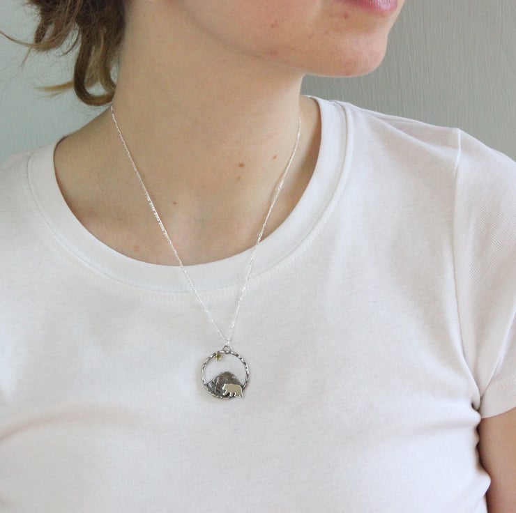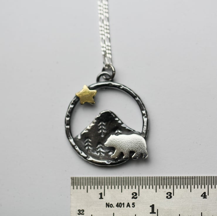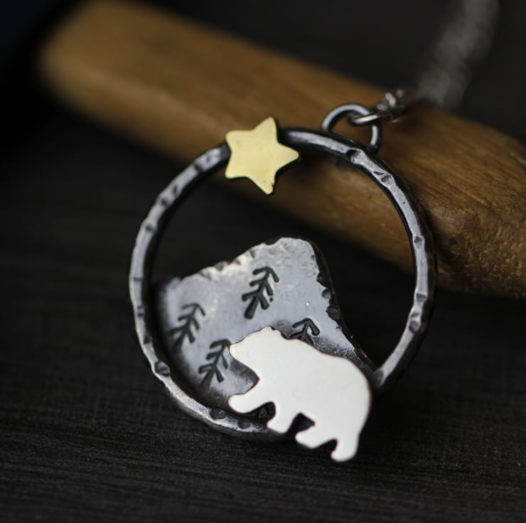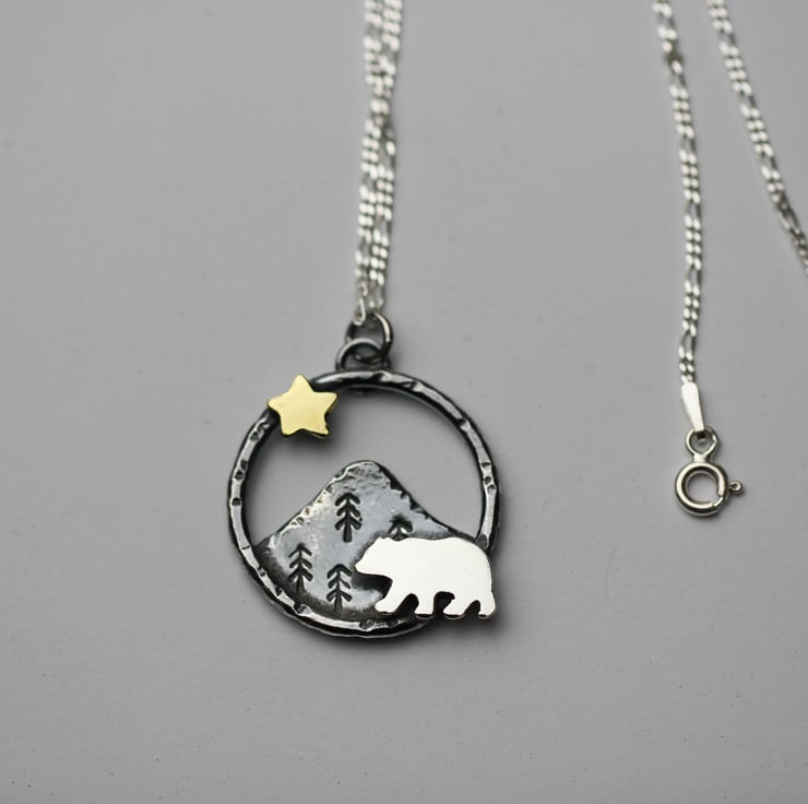 Sterling Silver Bear, Star and Mountain Necklace - Made to order