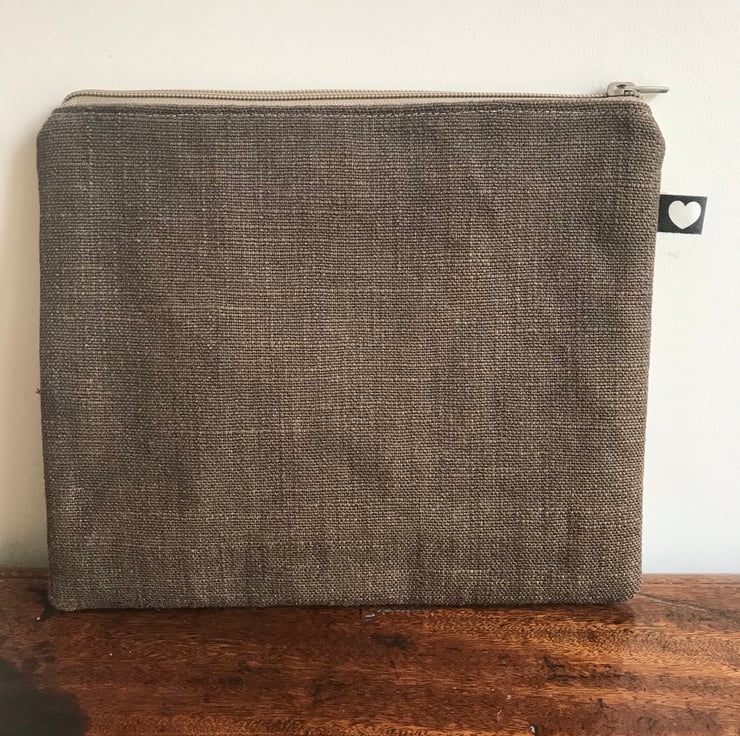 The pouch measures 25.5cm by 22cm. It is fully lined and carefully finished with a little heart tag.