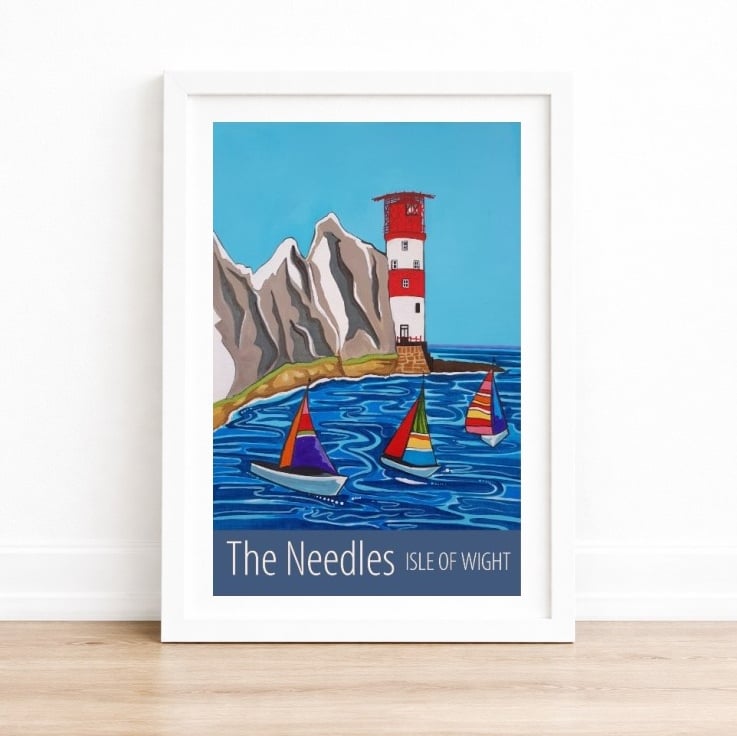 A contemporary travel poster style print of the famous Needles on the Isle of Wight, from my own original acrylic painting. A perfect gift for those who love the Isle of Wight!